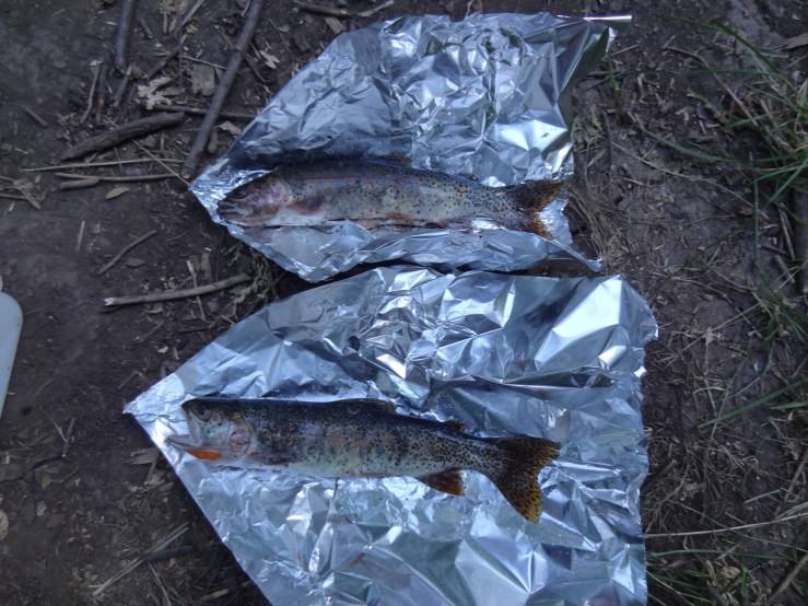 Usually a tell tale way to know you’re trout is safe to eat is when the eye on the underside turns white. Because the heat distribution of the campfire wasn’t exactly uniform, the eye turned white much before the underside was actually done cooking. Long story short, I ended up eating some undercooked trout and experienced mild symptoms of food poisoning for the next week.