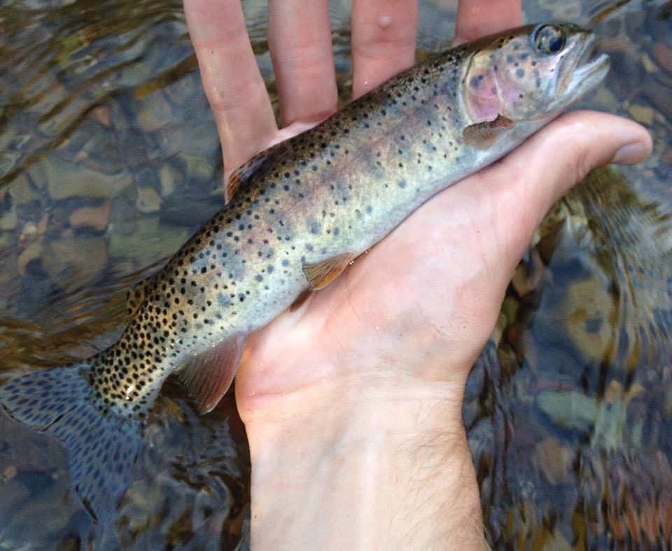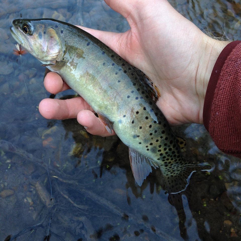 A stream flowed within earshot of our tents; a small feeder tributary of the Logan River. I hadn’t packed any food for myself and optimistically planned on eating trout. After setting up camp, I got the fly rod out and went to business. I knew prior to the trip that the Logan River is home to Bear River cutthroats, brown and rainbow trout, but was discouraged when I read an old DNR report that this particular tributary was “Brown trout dominant”. So I didn’t get my hopes up for catching this specie of cutthroat here.