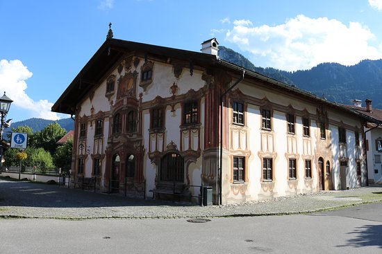 We were at the Gemeinde Oberammergau office in the town’s center. A building who’s exterior was classic Bavaria – Gothic architecture and covered in paintings of ornate patterns. This is the community center where licenses are obtained, fees are paid; anything that would require the local government’s assistance. As we approached, it looked more like a theater house than a place for administrative work.