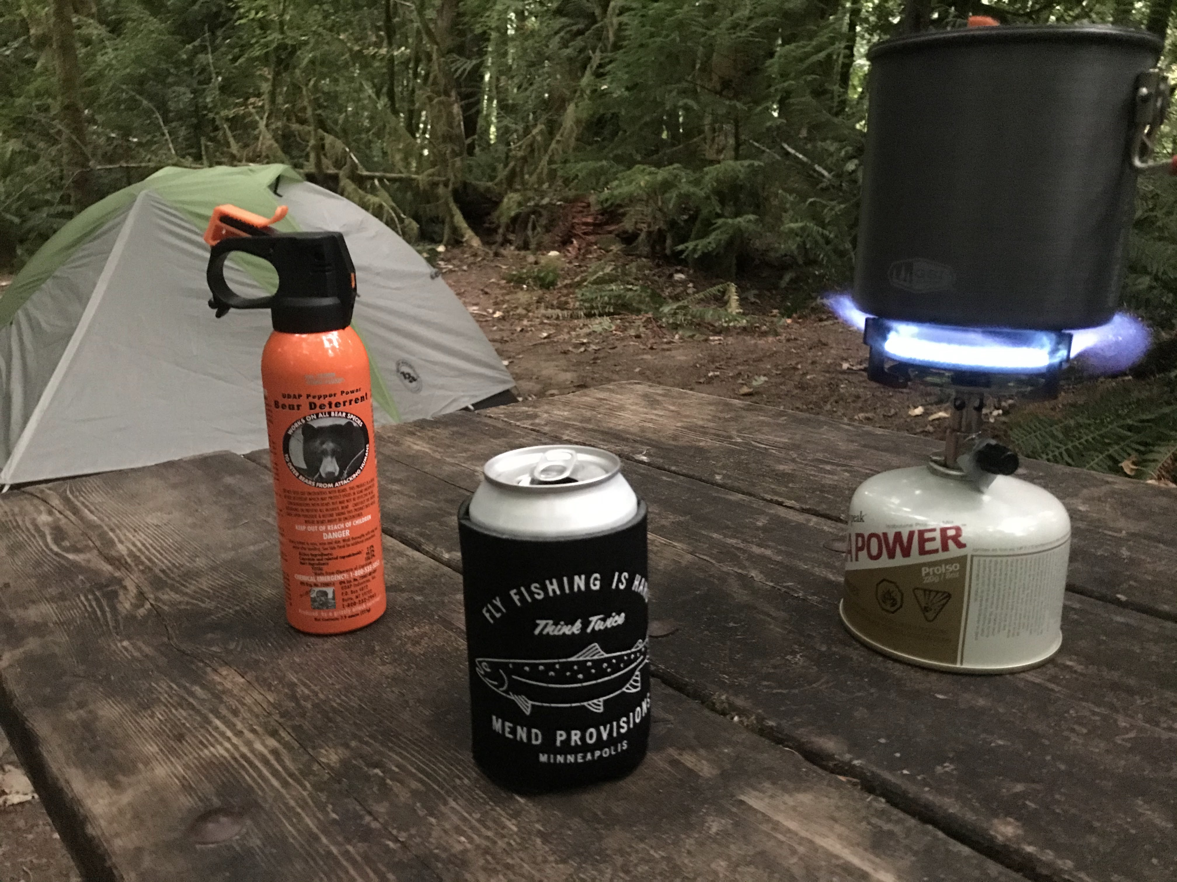 After a scenic 3.5 hour drive and ferry ride across the Puget Sound, we arrived to the campsite on a Friday evening, set up camp, and boiled water for dinner in the remaining light of the day. Head lamps were needed to finish dinner, clean up, and stow away away the scented goods in the supplied bear locker. We played card games in the tent and got some reading in before heading to bed. The overnight lows dipped into the upper 30s but we both stayed comfortable with the right layering and 20 degree sleeping bags.