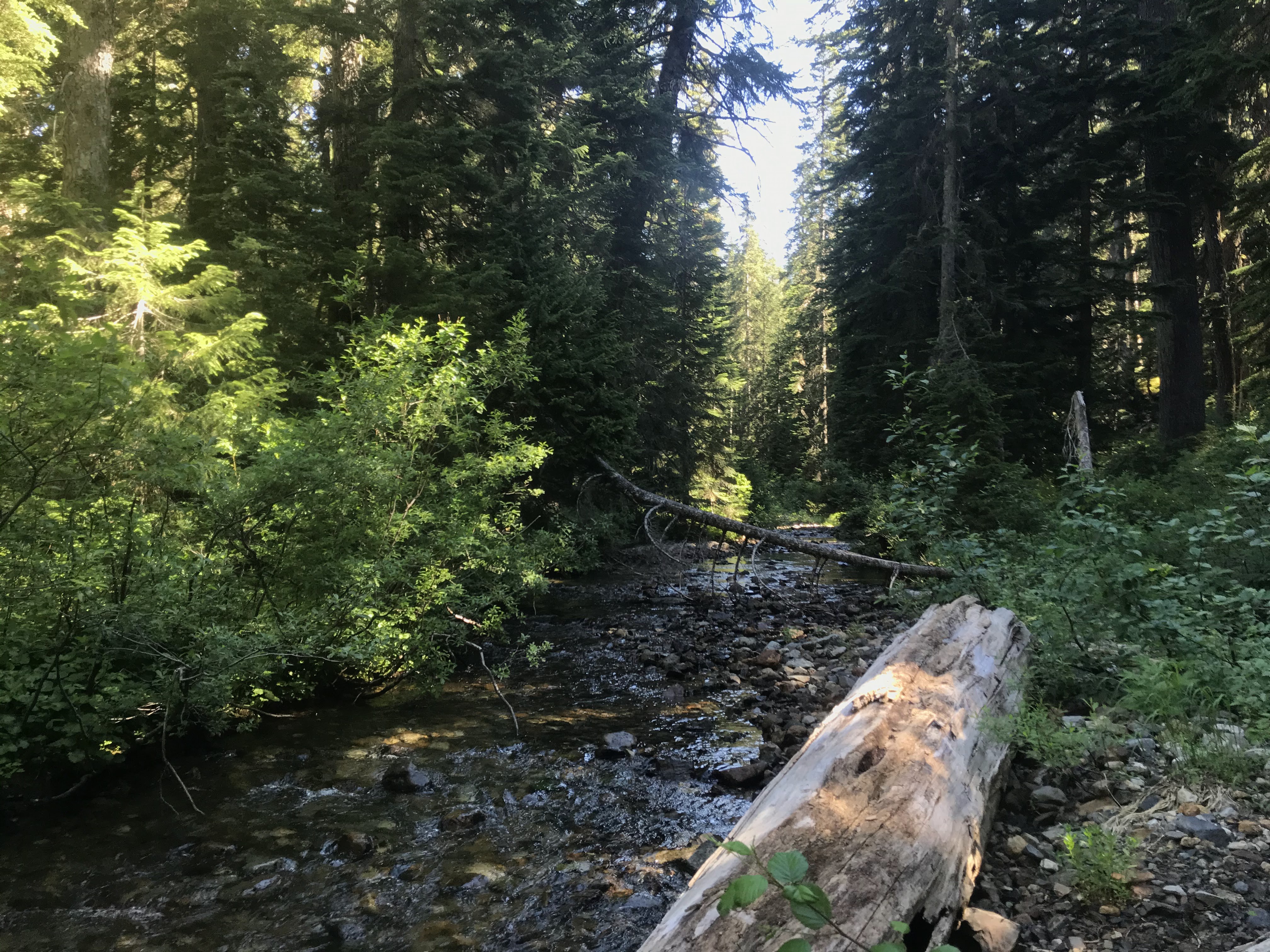 On a Saturday morning in late July, I departed early and headed east towards Seattle and the Cascade mountain range. A little over an hour later, I would get my first glimpse at the stream where it crossed a back road. As I had expected, it looked quite narrow and brushy. The visible portions were a series of steep cascading falls emptying into small plunge pools. These pools likely could contain trout, but both sides of the road were heavily posted for trespassing. I didn’t have the best feeling that this stream would provide accessible opportunities, but still I remained optimistic that a flatter section may afford the longer pools and runs to sustain a healthy trout population. This could only be found by making the hike.