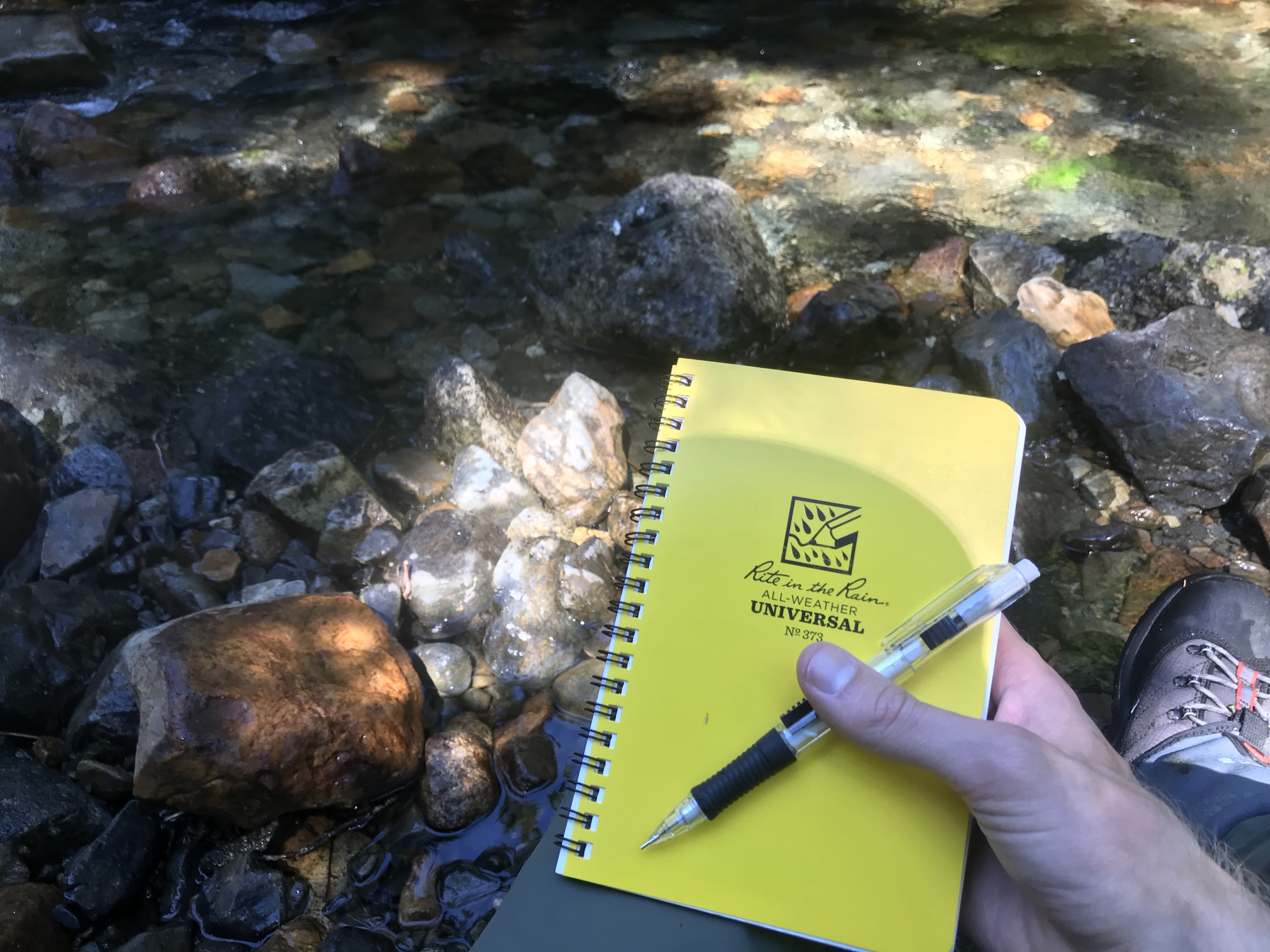 Eventually I reached the end of the flatter portion of the stream as the topography grew ever steeper. My GPS confirmed the transition to higher gradients ahead. I sat down on a moss covered rocks beneath a cluster of fragrant bluebells (Mertensia paniculata) and pulled out the contents of my lunch from my backpack; a tuna packet, dried mango slices, and a Clif bar. I ate and journaled while observing the pool directly ahead of me. The return hike seemed to pass by quickly, as I replayed each section and trout of the day through my mind. I contemplated returning to fish the waterfall pool on my hike out but decided it was best to leave that for a future trip.