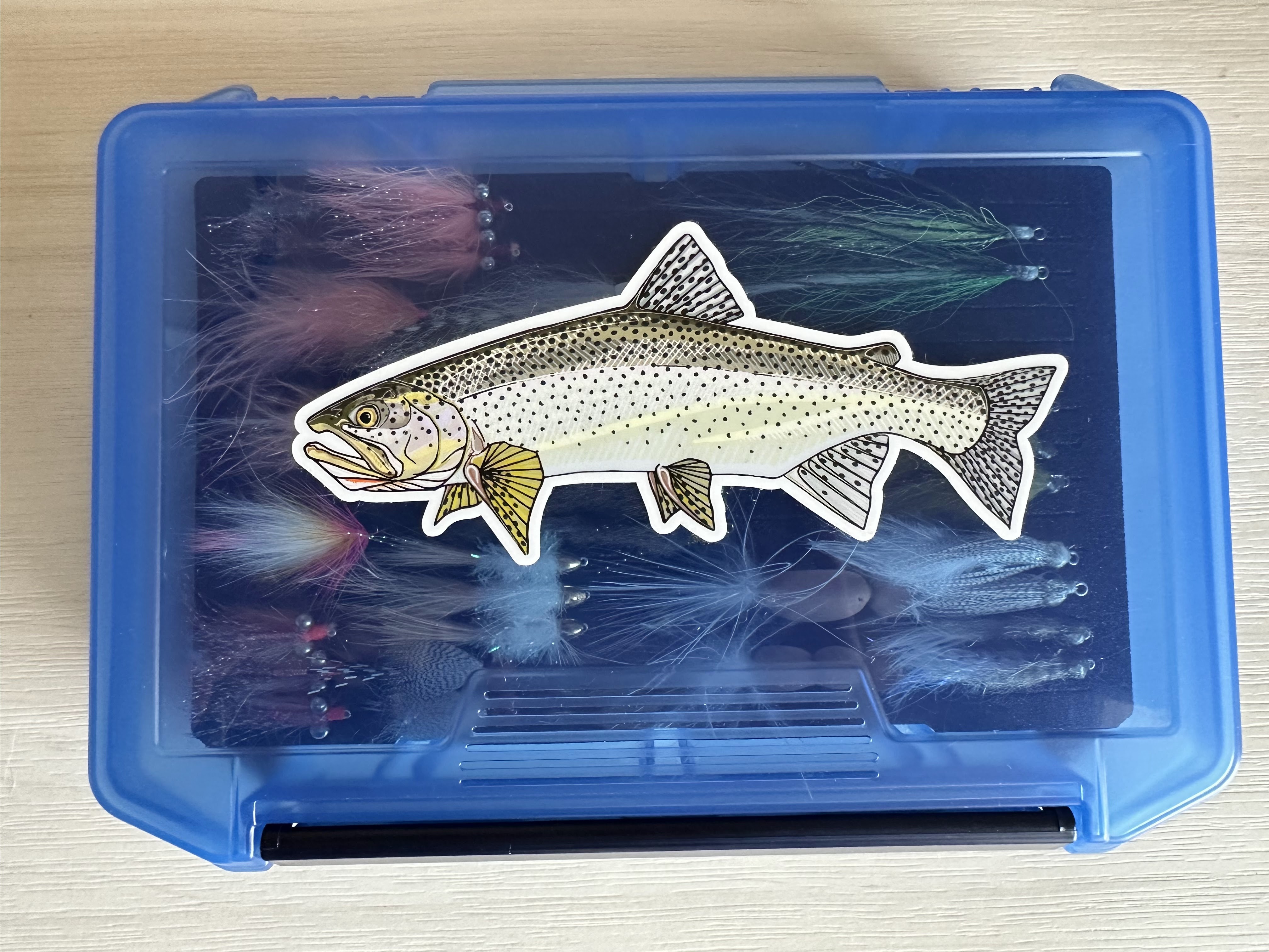 This kicks off in early March when the fry are no larger than a matchstick and continues until June when the fry have matured into smolt, capable of venturing out into deeper waters on their own. From there they will spend the next 30 to 66 months in marine waters before returning back to their natal streams to spawn. Salmon that can beats the odds and survive into adulthood are capable of reaching an average size of 24-31″ and weigh in between 6.5 and 12.5 pounds. The males will attain jaws filled with oversized teeth and wicked molted spawning coloration. The discerning sea run angler will have spent the dark days of winter tying up chum fry flies in a myriad of sizes, weights, and colors. My box was bursting at the seams with patterns ready for their maiden swim.