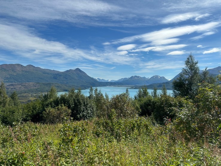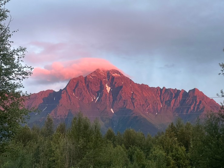 Soft daylight begins to illuminate the roadway revealing the expanse of mountains ahead. Hues of pink begin to percolate from behind dramatic cloud formations and the waters of the famed Kenai river glow aquamarine from their glacial origins.