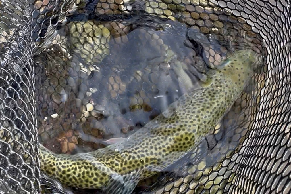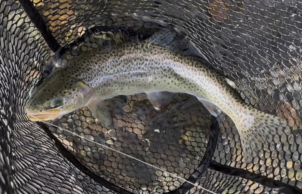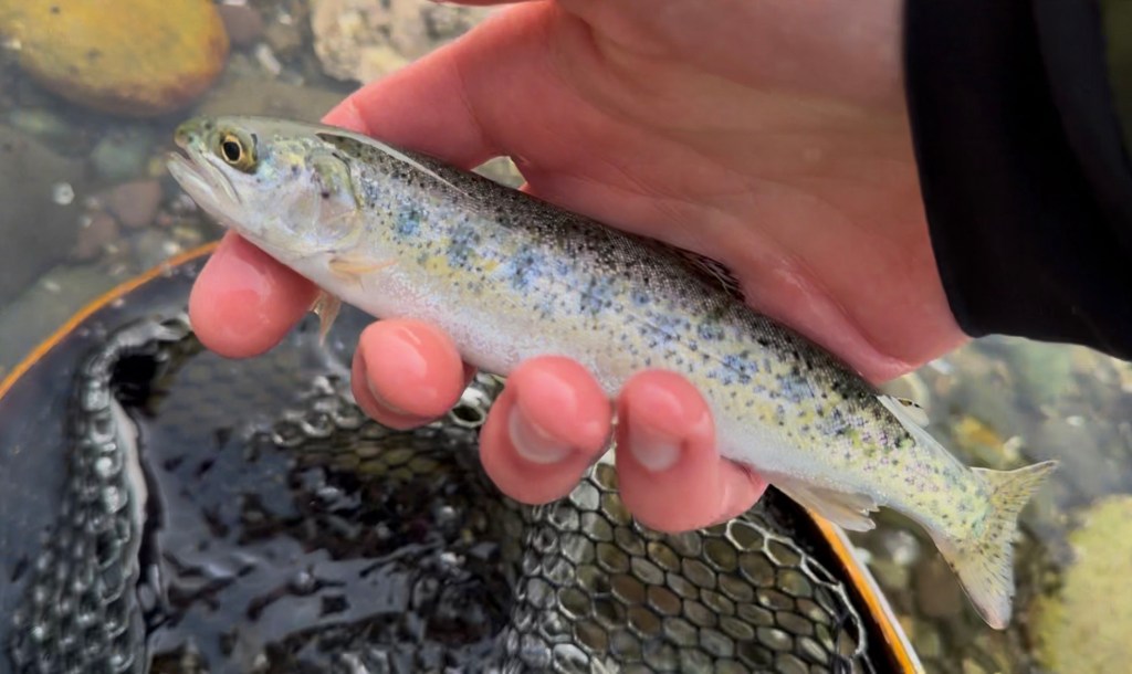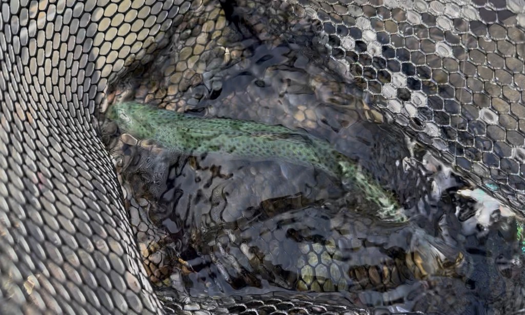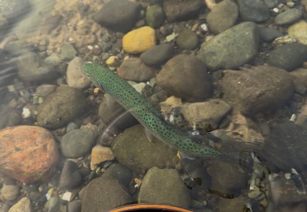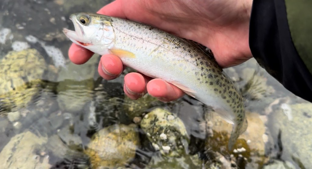 As soon as my wading boots met the smooth cobble substrate, a cutthroat cleared the water ten yards ahead of me. Setting my extra fly rod and bag down on a rock, I stripped a handful of line and cast to it. Thirty seconds later I watched a lively sea run fin at the bottom of my net. The top of its back gleamed the most brilliant emerald coloring of any trout that I have observed. I slipped it back just as quickly as it came to hand.