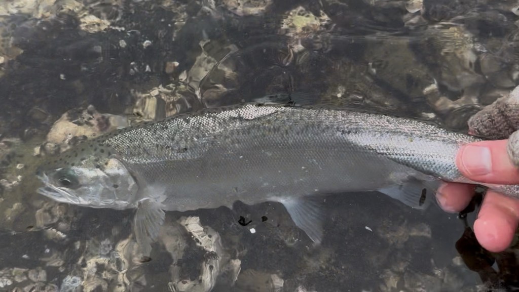 And that is exactly what happened. My line went tight and I snapped back into the moment. Something felt different about this one. It was faster than a sea run, coming directly at me before turning on a dime and racing horizontally back outwards. A full body of chrome sheen sparkled as it left the water. “A rezzie!” This would be my first resident coho salmon, or rezzie, as they’re known locally. A fish that is part of a population of coho salmon that spend their life within the confines of the Puget Sound instead of migrating out to the Pacific ocean and returning in late summer.